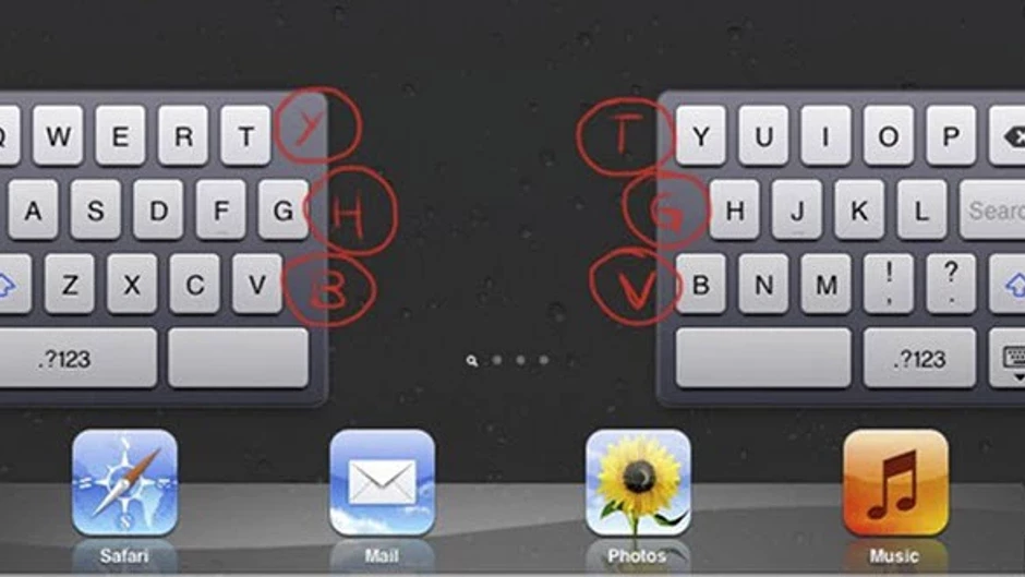 Apple bu uygulamada bir kolaylık yapmış ve klavyeyi ayıran boşluğun iki yanındaki son harflere, karşıdaki bölümün ilk tuşlarını da eklemiş. Böylece klavye kullanım alışkanlıkları standart olmayan (örn. Y harfini sol elini kullanarak veya H harfini sağ elini kullanarak yazan) kullanıcılar için karışıklık büyük ölçüde önlenmiş oluyor.