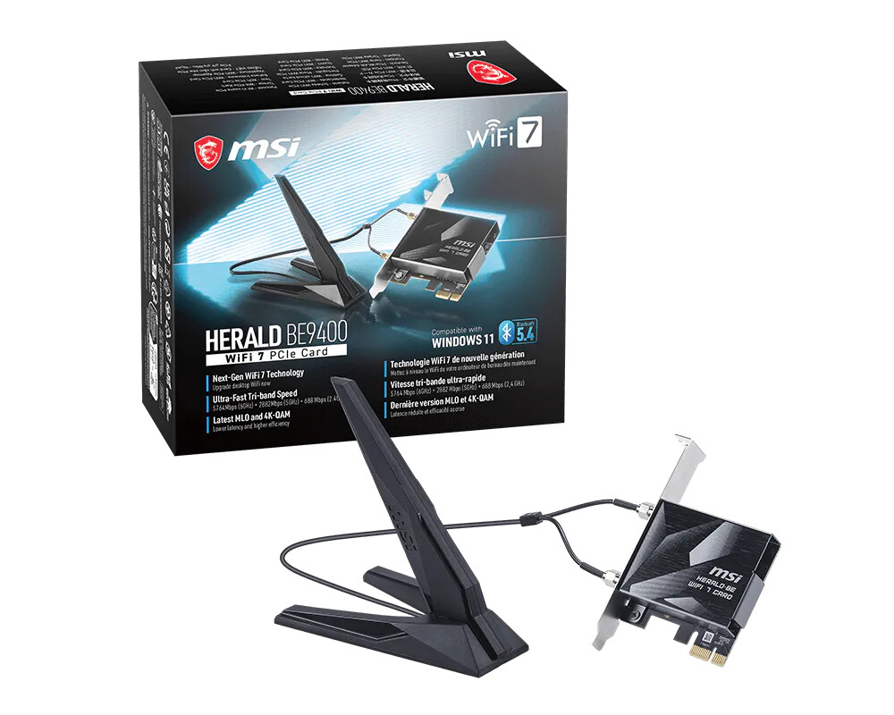 MSI, masaüstü bilgisayarlar için yeni kablosuz ağ çözümünü tanıttı: Herald BE9400 PCIe Wi-Fi 7 adaptörü. Bu yeni genişleme kartı, kullanıcıların sistemlerini en güncel kablosuz bağlantı standartlarıyla yükseltmesini hedefliyor.
