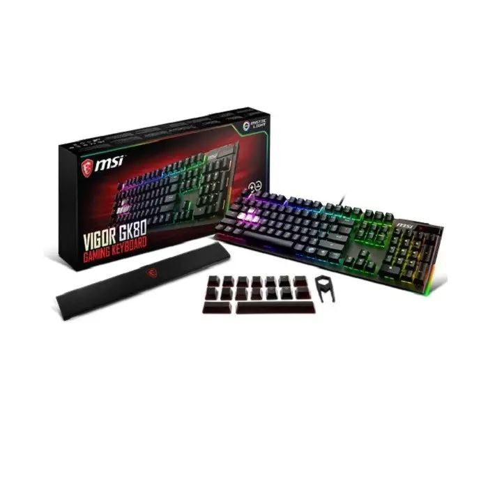 Sert ve dayanıklı bir aluminyum kasaya sahip Vigor GK80, CherryMX anahtarları, RGB Mystic Light ve istediğiniz her işlem için kullanabileceğiniz hotkey desteği ile üst sınıf bir mekanik klavyeden beklediğiniz tüm özelliklere sahip.  Bu klavyeyi diğerlerinden ayıran ise ekstra özellikleri. Konfor sağlayan bilek desteğinin alt kısmında saklayabileceğiniz yedek tuş kapakları da bu özelliklerden biri.