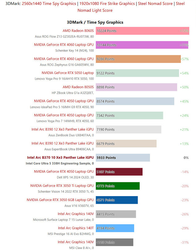Intel’in yeni Panther Lake nesil işlemcilerinden Intel Core Ultra 5 338H için engineering sample (mühendislik örneği) testlerindeki iç grafik birimi performansı sızdırıldı. Bu örnekte yer alan yeni entegre grafik çekirdeği Arc B370, üst seviyede konumlanan Arc B390 ile karşılaştırıldığında oldukça yakın bir performans göstermiş.