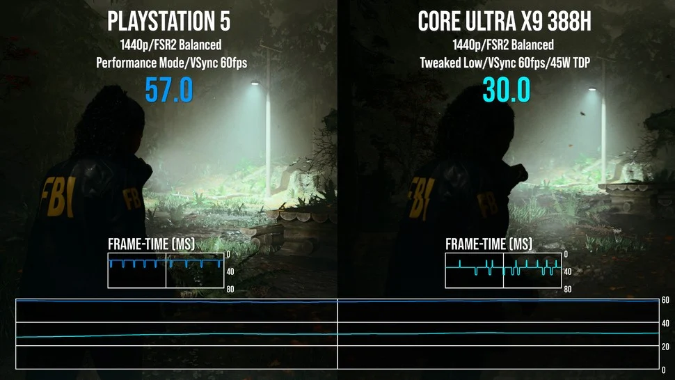 Lenovo IdeaPad Pro 5 gibi dizüstü bilgisayarlarda Panther Lake’in 30 W güç seviyesinde çalıştırıldığı testlerde oyun, belirlenen kare hızı hedefinde Series S ile kıyaslandığında daha stabil sonuçlar verdi. Testlerde Series S’e benzer grafik ve FSR2 ayarları kullanılarak yapılan karşılaştırmada, Panther Lake ortalama yaklaşık 29,5 fps elde etti ki bu, Series S’den yaklaşık yüzde yedi daha yüksek bir değer anlamına geliyor.
