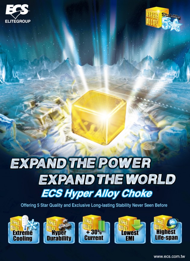 Elitegroup Computer Systems (ECS) yeni geliştirdikleri Hiper Alaşım Şok Bobinleriyle anakart dayanıklılığı ve kararlılığında çitayı tekrar yükseltmekte. ECS’nin altın kaplı alaşım bobin teknolojisinin yeni nesli yüksek enerji verimliliği ve düşük ısı üretimi sayesinde özellikle overclock için ideal.