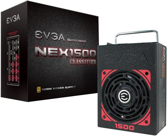 Nvidia’nın en önemli partneri EVGA, ürettiği üst düzey Classified anakartları ve üst düzey ekran kartlarının doğurduğu en önemli ihtiyaç olan güç için, 1500 wattlık ve sıradışı özelliklere sahip bir güç kaynağını duyurdu. EVGA SuperNOVA NEX1500 Classified adlı güç kaynağı, çok az markada bulunan tam anlamıyla modüler bir ürün; tüm kabloları sökülüp takılabiliyor. Kabloların hepsi, sleeve olarak bilinen örgüler içine alınmış, ancak diğer PSUlarda, tüm bir kablo demeti tek bir örgü içine alındığından esnekliğini kaybederek montajda sorun çıkartırken, EVGA, her kabloyu ayrı bir örgü içine almış. Üst düzey Japon malı kapasitörler ve dayanıklı rulmanla desteklenmiş Sanyo Denki marka fan gibi yüksek kalite detaylarının yanında, EVGA, PSUnun etiketinde, tepe değerlerini değil, sürekli değerleri yazmış. 1500 watt için, %90 üstü verimlilik ile 80+ Gold sertifikasını da almış.