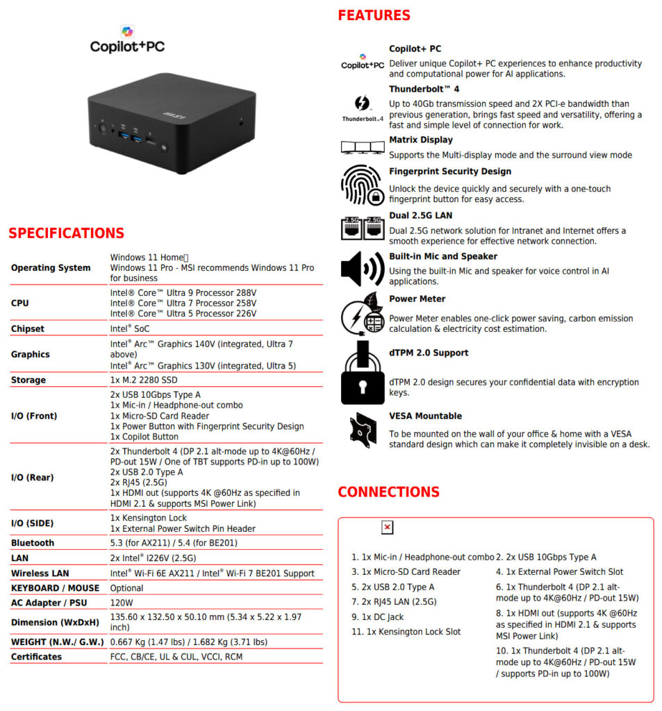 MSI, Cubi NUC AI 2MG’nin eğitim, sağlık, otomasyon, perakende ve yapay zekâ uygulamaları gibi birçok sektörde kullanılabileceğini belirtiyor.