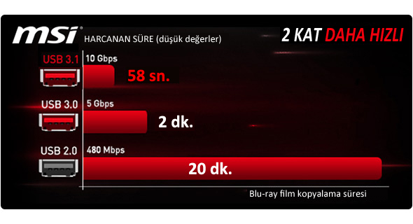 Göz kamaştırıcı bir performansla USB3.0 arayüzünden iki kat daha hızlı olan USB3.1, MSI’ın yeni Z97 ve X99 GAMING modelleri ile geliyor. GAMING ailesinin yeni üyeleri olan Z97A GAMING 9 ACK, Z97A GAMING 7, X99A GAMING 9 ACK ve X99A GAMING 7 anakartların tümünde, USB3.0 ve USB2.0 ile geriye dönük uyumluluk sunan iki adet Type-A USB 3.1 portu mevcut. USB 3.1 desteğinin yanı sıra tüm Z97A anakartlar yakında çıkacak olan 5.nesil Intel işlemcilerle de uyumlu.