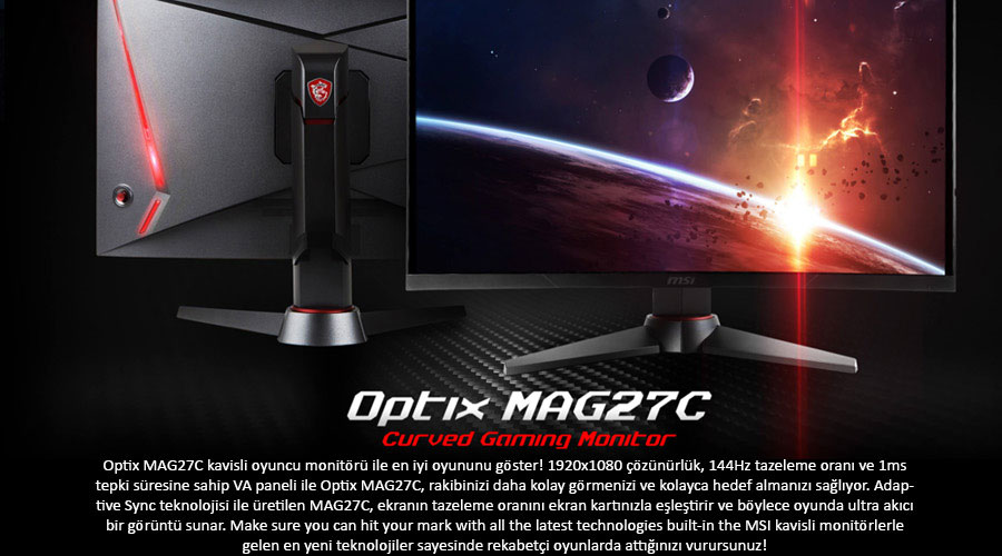 MSI, oyuncular için donanım olanaklarını genişletiyor. Oyunculara kendilerini oyunun tamamen içinde hissedecekleri bir deneyim yaşatabilmek için yeni ve güçlü bir kavisli monitör serisi hazırlayan MSI, Optix MAG serisi ile 2 farklı boyutta 3 model sunuyor: MSI Optix MAG24C, MSI Optix MAG27C ve serinin amiral gemisi olan MSI Optix MAG27CQ, MSI’ın oyun monitörü pazarına ihtişamlı girişini müjdeliyor. Optix MAG27CQ en yeni oyun özellikleri kullanıcıyı oyunun içine tamamen hapsediyor. Kavisli VA panel, 1800R yarıçap, 1440p WQHD çözünürlük, 144Hz tazeleme oranı ve 1ms tepki süresi ile bu oyun monitörü hız ve çarpıcı görseller için üretildi.