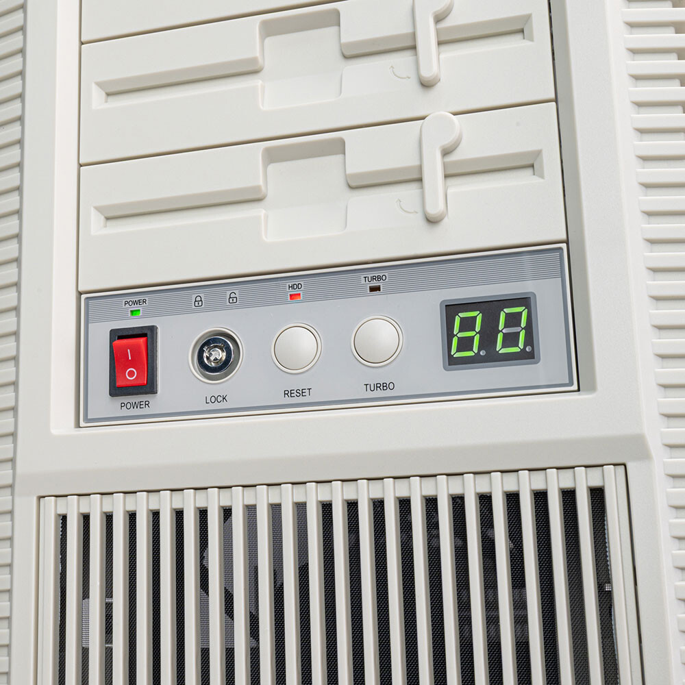 Yeni SilverStone FLP02 isimli kasa, dışarıdan bakıldığında 80’ler-90’lar döneminden çıkmış gibi duran klasik bir bej kule yapısına sahip; üzerinde güç, reset ve “Turbo” düğmeleri, ayrıca eski makinelerde yaygın olan bir kilit mekanizması bulunuyor. Bu tasarım detayları sadece görsel bir nostalji değil; Turbo tuşu modern versiyonunda tüm fanları kontrol ederek fan hızlarını artırıyor ve bu değişikliği eski tarz dijital bir ekranla gösteriyor.