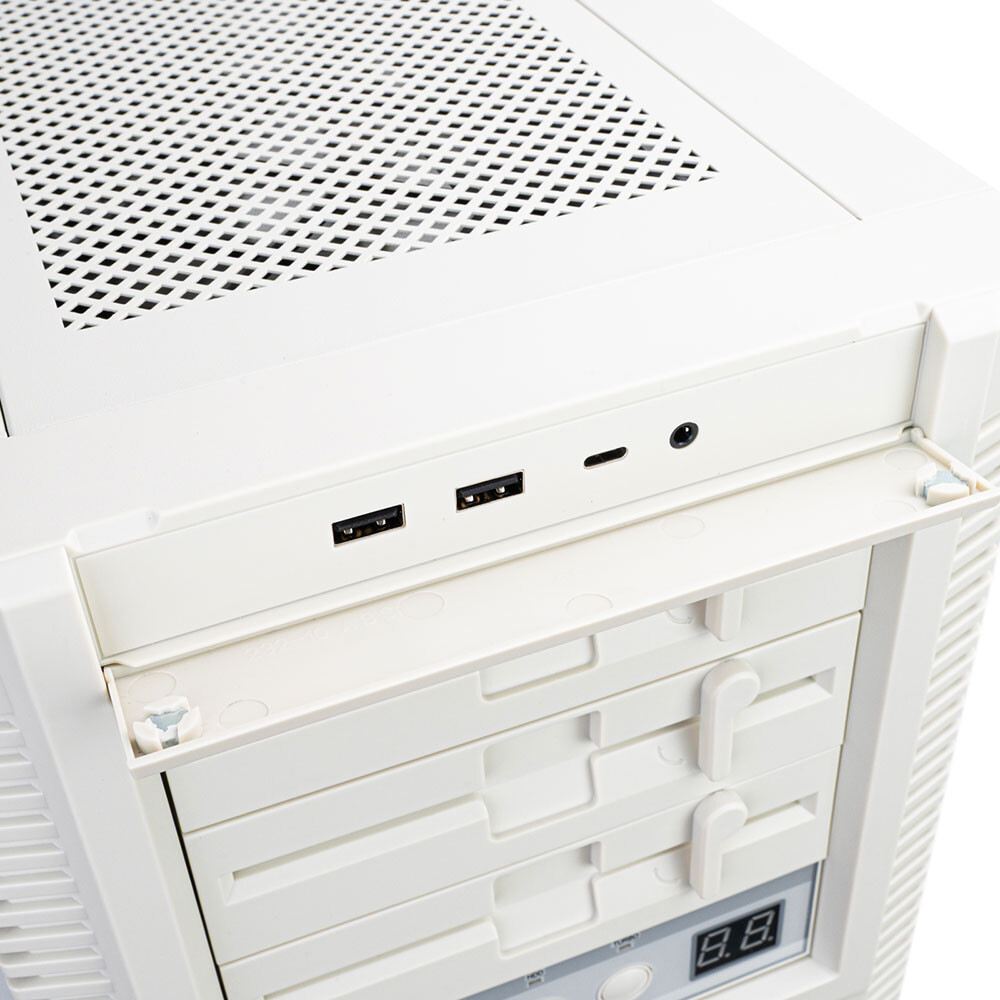 Ancak kasanın içi tamamen çağdaş sistemlerle uyumlu: ATX, micro-ATX ve Mini-ITX gibi farklı anakart form faktörlerini destekliyor, 360 mm’ye kadar radyatörlü su soğutma çözümlerini ve uzun modern ekran kartlarını barındırabiliyor. Ön panelin bej görünümünü bozmayacak şekilde, manyetik kapak altında USB-C, USB 3.0 ve ses gibi güncel bağlantı noktaları gizlenmiş durumda.