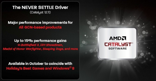AMD yaptığı duyuru ile yeni Catalyst 12.11 sürücü versiyonuyla % 15-20′e varan bir performans artışı hedeflediklerini duyurdu. AMD’nin fiyat-performans yarışında NVIDIA’ya karşı sağlamayı hedeflediği performans artışı özellikle yeni nesil CoreNext mimarisi üzerine kurulu HD 7750, HD 7770 GHz Ed., HD 7850, HD 7870 GHz Ed., HD 7950, HD 7950 BE, HD 7970, HD 7970 GHz Ed. ve HD 7990′un yanı sıra Radeon HD 7700M serisi, HD 7800M serisi ve HD 7900M mobil GPU’larını kapsıyor.
