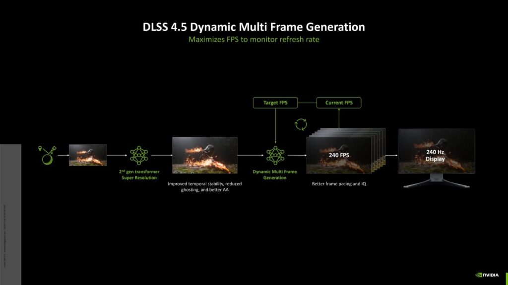 Özetle, Nvidia DLSS 4.5 ile hem görüntü kalitesini yükseltip görsel bozulmaları azaltmayı hem de performansı artırarak ultra yüksek kare hızlarında daha akıcı oyun deneyimi sağlamayı amaçlıyor.