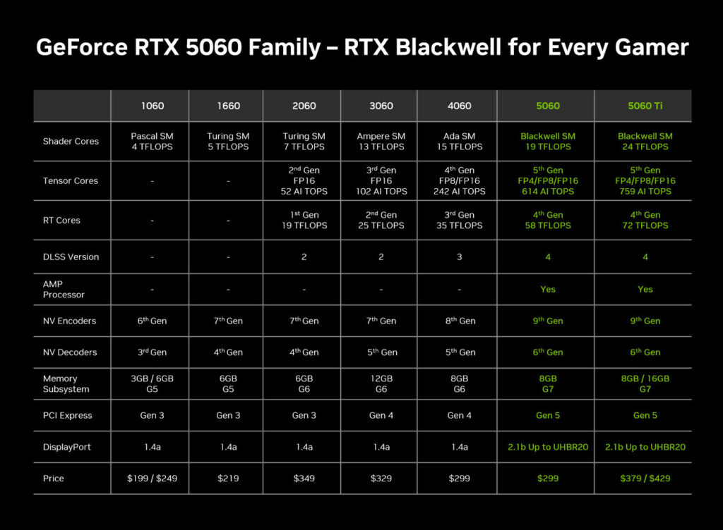 NVIDIA, yayınladığı video açıklamasında RTX 5060 Ailesi’ni DLSS 4 ve Blackwell teknolojisiyle desteklenen, yüksek görsel kalite, yüksek kare hızı ve düşük gecikme sunan bir seri olarak tanımlıyor. NVIDIA, bu yeni seriyi 299 dolardan başlayan fiyatlarla tüm oyunculara ulaştırmayı hedefliyor.