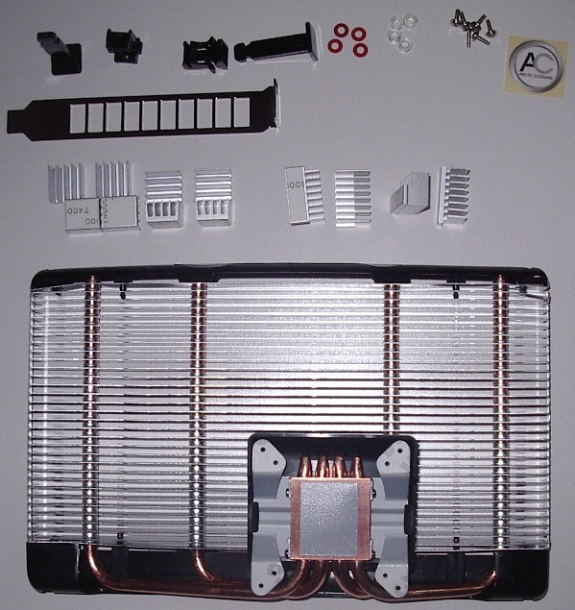 Bu soğutucu, yine bakır bir tabandan kanatlara dağılan 5 adet 6′şar mmlik ısı borusuna ve  toplamda 1676 cm² civarında yüzey alanı bulunan, her biri 0,4 mm kalınlığında 84 adet fine sahip. Ayrıca, doğrudan tabana bağlı bir aluminyum soğutucu bloğu da mevcut, 30 adet kanat barındırıyor. Eski nesil Accelero Xtreme soğutucularında bu kısım yoktu.