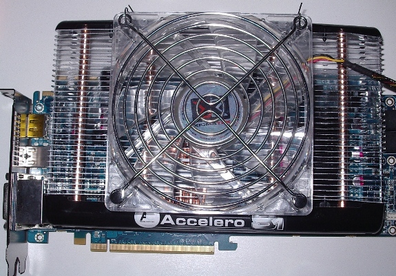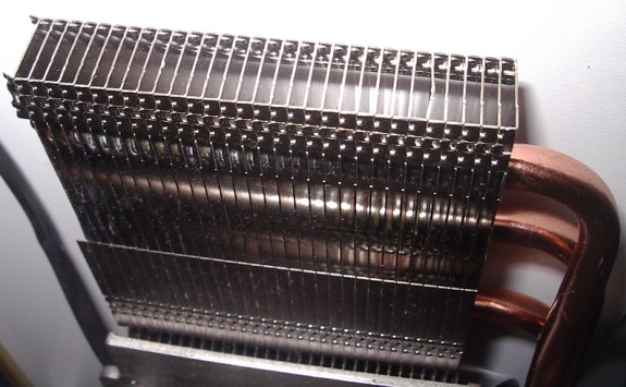 Accelero S1 Rev.2, esasen oldukça eski bir soğutucu, ancak tasarımının geniş uyum aralığına imkan vermesi nedeniyle, sürekli yenilenerek tüketicilere sunulabiliyor. 0,4 mm kalınlığında 32 adet oldukça büyük finler, ki bu finlerin toplam yüzey alanı, 1376 cm² civarında, soğutucunun performansını açıklayan en önemli veri bu, bakır tabandan 4 adet 6′şar mm çapında bakır ısı borusuyla gelen ısıyı havaye verebiliyor. Finlerin arasındaki genişlik, soğutucunun pasif olarak kullanımı açısından önemli, ancak bu tasarımın sadece standart kasa içi hava sirkülasyonunda işe yaradığını belirtelim, kasa yan fanından gelen hava, finler arasına giremiyor, sadece önden arkaya doğru olan hava akımı finler arasında akabiliyor.