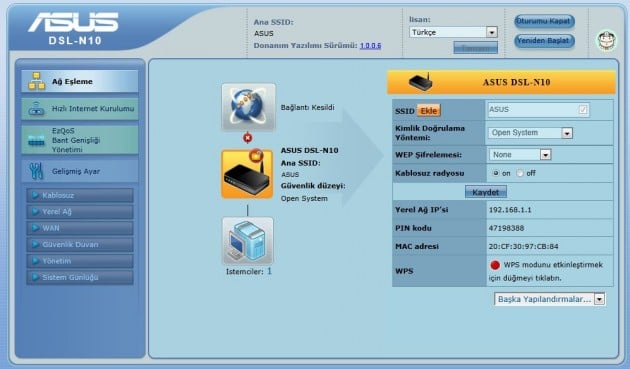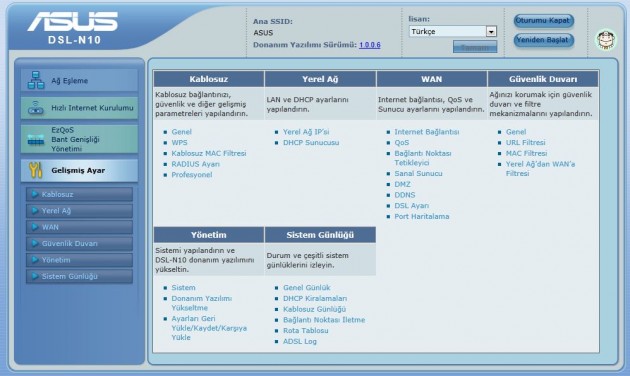 Modemin gelişmiş ayarlar kısmında ise kablosuz, güvenlik, wan, yönetim gibi komple ayarlar yapabileceğiniz ana başlıklar altında alt menüler yer alıyor. Bu sayede filtreleme, gelişmiş DNS ayarları ve mac adresi atayabilme gibi birçok seçeneğe ulaşabiliyorsunuz.