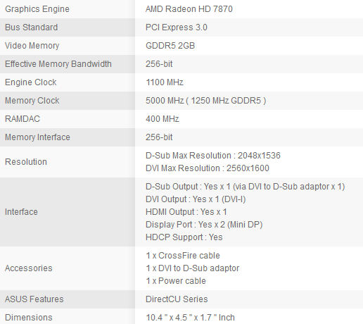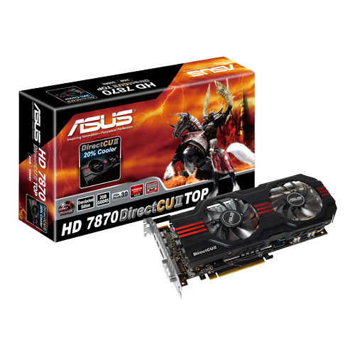 Kartın ince kanatlı fanları biraz narin gözükse de yeni tasarımı ile de sessiz çalışmayı başarıyor. Çoklu GPU’ya hazır olarak CrossFire köprüsüne de sahip kart çift 6 pinlik güç girişi ile yükte 225 W bir güce gereksinim duyuyor. Kartın boştayken harcadığı güç miktarı ise ZeroPower’ın nimetlerinden yararlanarak 12 W civarında seyrediyor. Ek olarak ASUS, Radeon HD 7870 Direct CU II modelinde high-end kartlarda kullanılan voltaj kontrolür çipi CHL 8228 ile aynı görevi yapan CHil CHL8225 kontrolcüsünü kullanıyor. Zaten kontrolür GPU Tweak gibi birçok hız aşırma yazılımına da destek veriyor.