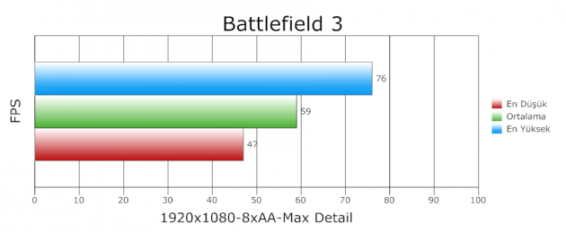 DICE’ın güçlü grafik motoru Frostbite 2′yi kullanan Battlefield 3 ekran kartlarını en çok zorlayan oyunlardan bir tanesi. 8xAA ve yüksek detay seviyeleri seçilmesine rağmen kart oyunun hakkını vermeyi başarıyor.