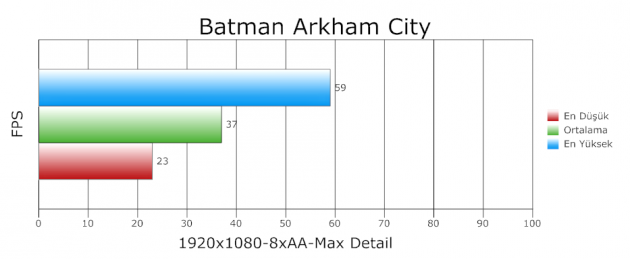 Rocksteady Studios’un geçtiğimiz sene bolca ödüle layık görülen Batman: Arkham City de testimize konuk oldu. Batman: Arkham City, aslında Nvidia kartlarda daha iyi başarım gösteren ve Physx yetenekleri ile kendinden söz ettiren bir oyun. Biz testimizde Physx seçeneğini kapatıp, normal tesselation seçimi ile oyunun performansını değerlendirdik.
