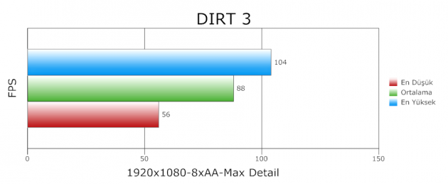Codemasters’ın sevilen ralli simülatörü Dirt 3′de kart, gayet üst FPS değerlerine imza atıyor.