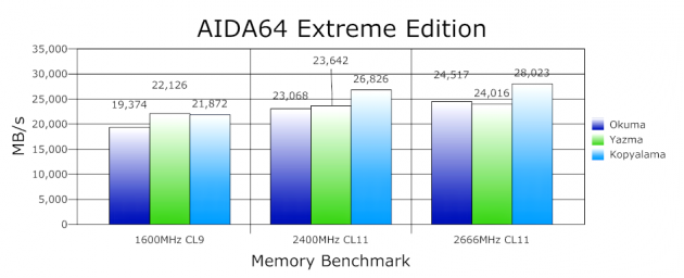 Bellek kiti ile birlikte standart JEDEC DDR3-1333 9-9-9 at 1.5V dahil birçok zamanlama profili geliyor. Intel Extreme Memory profilinin de dahil olduğu (Intel XMP) sertifikasyonuna sahip zamanlama profillerinden ise 2666MHz 11-13-13, 1.65V ve 2400MHz 11-13-13, 1.65V profillerini seçmekte mümkün. Özellikle hız aşırtmacılar için 1.5v -1.65v voltaj seçimi ile dengeli bir overclocking işlemi de sağlanmış oluyor.