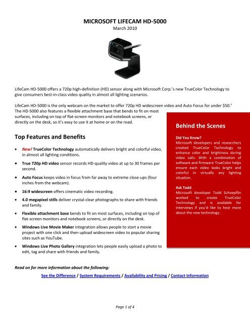 Geçtiğimiz günlerde Microsoft web kameralarına üç yeni model daha ekledi. LifeCam HD 5000, 5001 ve 6000 modelleri isimlerinden de anlaşılacağı gibi HD, yani yüksek tanımlamalı görüntü yakalama özelliğine sahipler. Bu modellerden LifeCam HD 5000’i  sizler için inceledik.