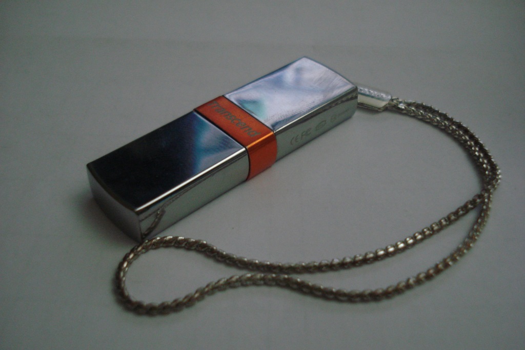 Transcend JetFlash V85’in kutusundan ayrıca bir taşıma kayışıda çıkıyor. Bu kayışta konsepte uygun olarak yine metalden yapılmış ve gümüş havası verilmiş. Bu konsepti ile Transcend sağlamlık yanında daha çok sanki bayan müşterileri hedeflemiş gibi duruyor.