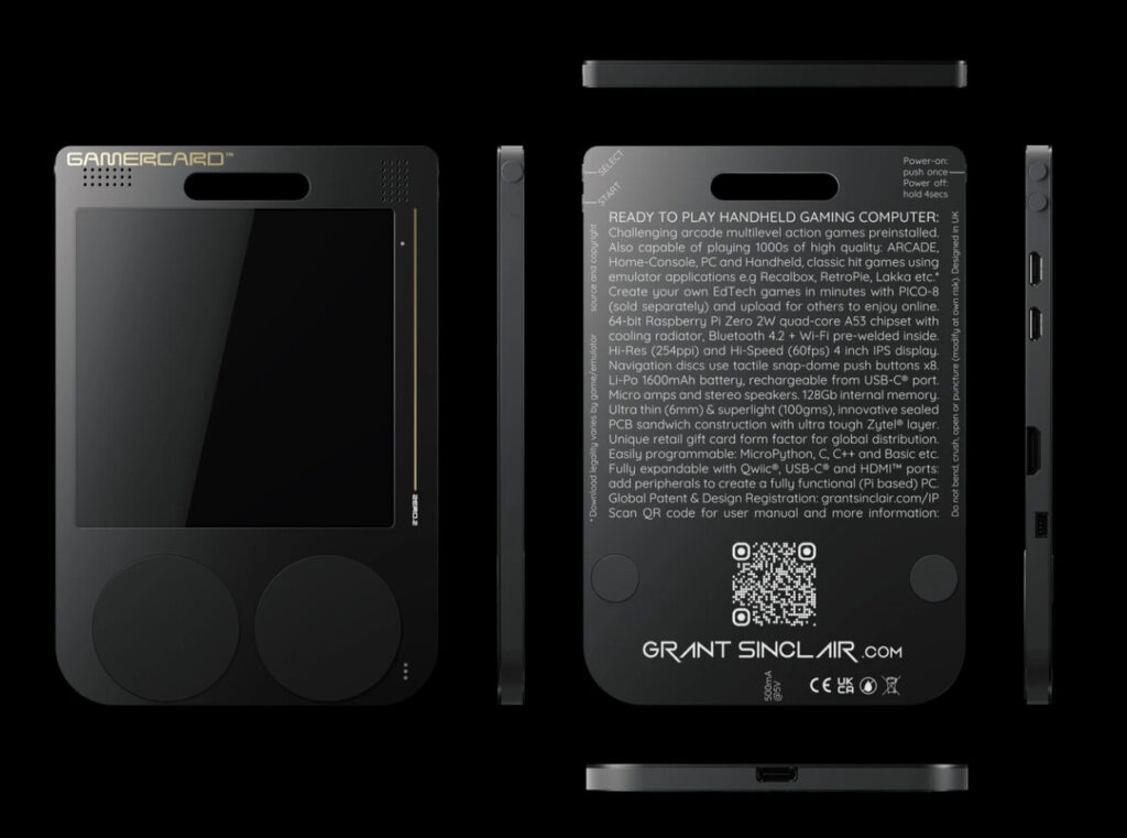 ZX Spectrum’un efsanevi yaratıcısı Sir Clive Sinclair’in yeğeni Grant Sinclair, retro oyun tutkunlarını hedefleyen yeni ve ultra ince taşınabilir oyun konsolu “Gamercard”ı tanıttı. Kredi kartı boyutlarında tasarlanan bu cihaz, yalnızca 7 mm kalınlığında ve 120 gram ağırlığında. 3.5 inçlik IPS ekrana sahip olan Gamercard, dört çekirdekli 1.8 GHz ARM işlemciyle çalışıyor ve 4000 mAh kapasiteli bataryasıyla uzun süreli oyun deneyimi sunmayı hedefliyor.