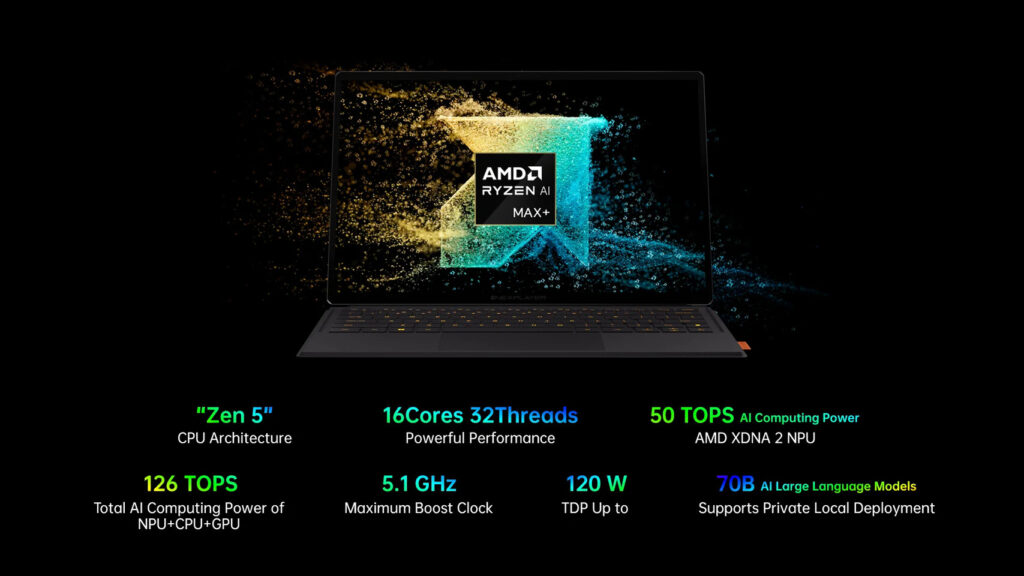 OneXPlayer, Super X adlı yeni bir oyun ve yapay zeka tablet/laptop hibrit cihazını tanıttı. Cihaz, AMD’nin Strix Halo serisi APU’su olan Ryzen AI Max+ 395 işlemcisiyle geliyor. Bu işlemcide, 40 işlem birimli (CU) Radeon 8060S entegre grafik birimi bulunuyor ve OneXPlayer’a göre bu APU 120 W TDP’ye ulaşabiliyor.
