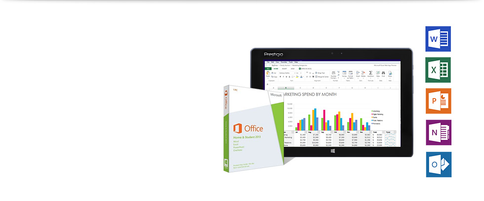 Prestigio Visconte’nin 10 noktadan dokunmatik ekranı ile ister dokunarak, ister bir stylus kalem ile isterseniz de fare ve klavye aracılığıyla Word, Excel, PowerPoint ve One Note uygulamalarını kullanabiliyorsunuz. SkyDrive uygulaması sayesinde buluttaki dosyalarınıza istediğiniz zaman istediğiniz yerden ulaşabiliyorsunuz.