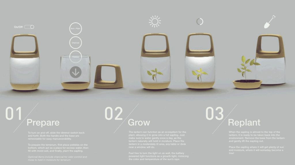 Tasarımcı Frank Shaw, kamp feneri  içinde bitki büyütmek gibi ilginç bir fikre imza atmış. LED aydınlatmalı bu fener, aynı zamanda içine dikilen fidanın da büyümesine yardımcı olan ayarlanabilir bir ışık kaynağı. Fidan yeterince büyüdüğünde fenerin içinden çıkartıp toprağa dikiyorsunuz ve başka bir fidan alıp fenere yerleştiriyorsunuz.