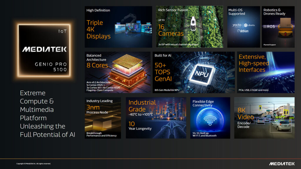 MediaTek’e göre Genio platformu, cihaz üzerinde çalışan üretken yapay zekâ (on-device generative AI) ve gelişmiş görüntü işleme özellikleri sayesinde IoT cihazlarının buluta bağımlılığını azaltarak daha hızlı ve güvenli çalışmasını sağlıyor. Bu yaklaşım, özellikle gerçek zamanlı karar verme gerektiren robotik ve endüstriyel sistemlerde önemli avantajlar sunuyor.