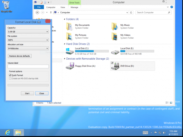Windows 8.1 build 9369 sürümünde ReFS desteği yer alıyor
