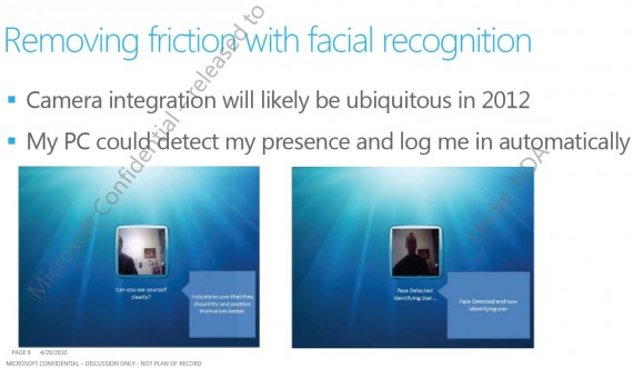 Tabanın belki de en çok ses getirecek yönü kullanıcı hesabına erişim metodu.Windows 8 işletim sistemi kendisine tanıtılan kullanıcı hesaplarını aktif hale getirmek için sıradan hesap adı/şifre ikilemi yerine yüz tanıma sistemini devreye sokacak.Temelde bir webcam ile donatılan Windows 8 yüklenmiş PC, kullanıcıya ait hesabı önünde oturan kişinin kim olduğuna bakarak aktif çalışmaya açacak.